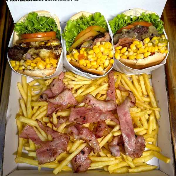 3 X-SALADA + PORÇÃO DE FRITAS COM BACON + REFRI 2 LITROS